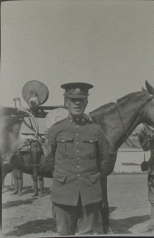 Sergeant L. Reading with brigade telephone pack-set carried by horse, Ottawa Ontario, May 1916.
