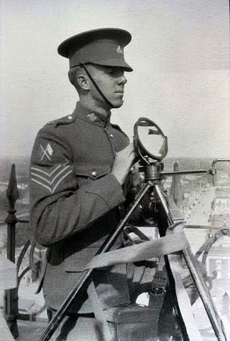 Sergeant W.H. Reid with Heliograph, School of Signalling, Barriefield Ontario, October 1915.