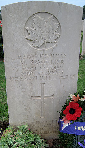 Grave marker for Sawchuck, Michael in Moro River Canadian War Cemetery.