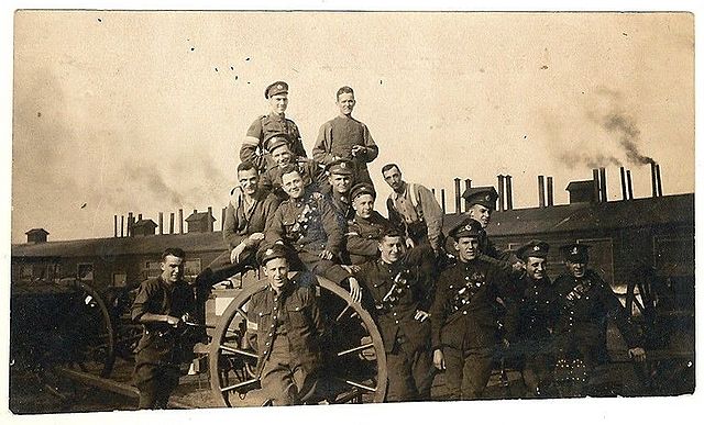 A photo of unidentified Signallers with cable wagons during the Great War.
