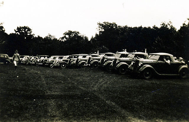 Circa 1935 photo of early Signals vehicles in Bordon. The closest cars are Car, 2-seater, Wireless, Ford Type (Ford Roadster) and other vehicles such as Car Wireless Control Ford Type can be seen farther back.