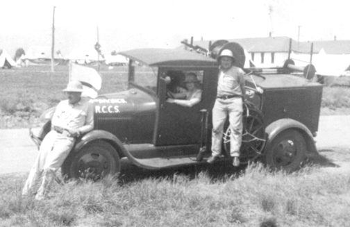 A circa 1937 photo taken at Valcartier Camp of a truck marked "4th Div Sigs / R.C.C.S."