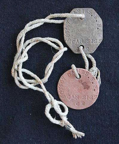 First World War identity discs for Sapper E.R. (Edward Ross) Davies.