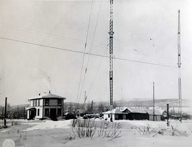 Library and Archives Canada caption: Radio-telegraph station of the R.C.C.S. Northwest Territories and Yukon Radio System, Mayo, Y.T., 1924. [webmaster: date is certainly wrong as during that time the station operated out of a log cabin.]