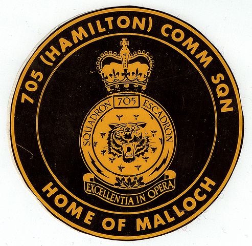 A sticker from 705 (Hamilton) Communication Squadron. States "Home of Malloch" which refers to Colonel Francis G Malloch, founder of the Malloch Trophy.