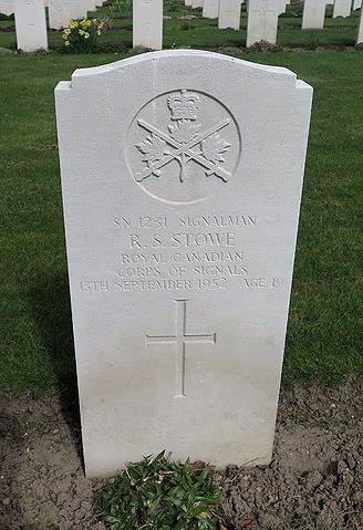 Grave marker for Stowe, R.S. in Hanover Military Cemetery.