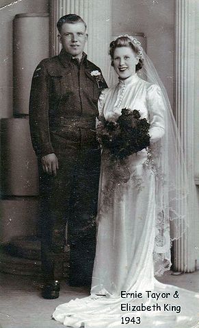 A wedding photo of Ernest Taylor and his wife Patricia King, February 1943.