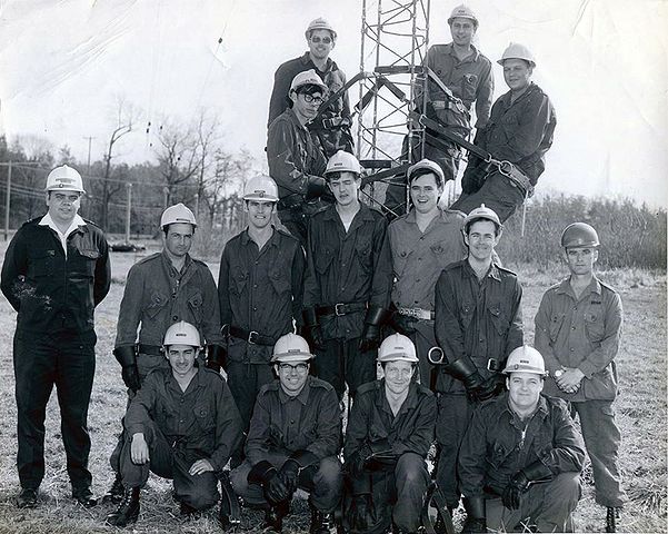 Telecom Rigger Course photo 1975. Names of everyone are not available but the officer on the left is Captain Wilf Lefresne