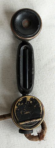 Photo of a Telephone, Hand, F. This handset was used with a Fullerphone Office Mark I. This particular example was made by S.B. & Co Ltd in 1916 and is serial number 47812.