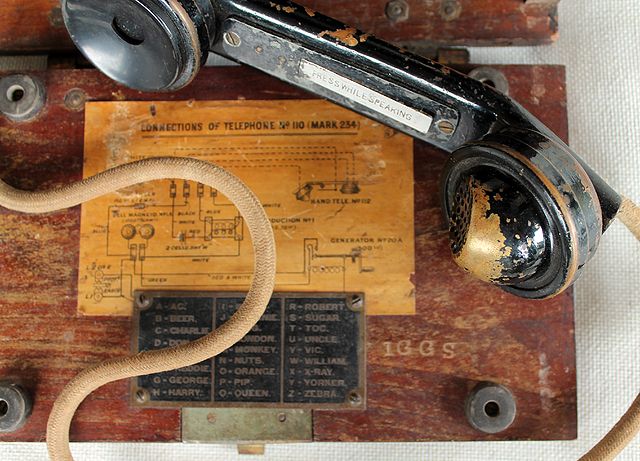 A Telephone No. 110. This example is marked with C broad arrows (Canadian Government mark) on the box and handset along with "1 GGS" stamped into the inside of the cover.