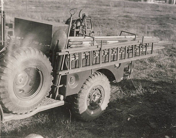 Cable laying crew with a Dodge 3/4 Ton APT Line vehicle. Photo is from the Royal Canadian School of Signals and is dated 13 July 1950.