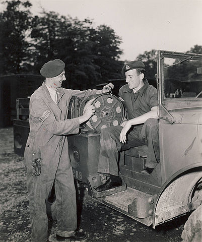 An undated photo of two soldiers "posed" with a Dodge 3/4 Ton APT Line vehicle.