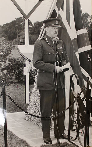 Photo of the MGen EG Weeks at the dedication of the RCCS WW2 Cairn - United Kingdom 26 July 1945.