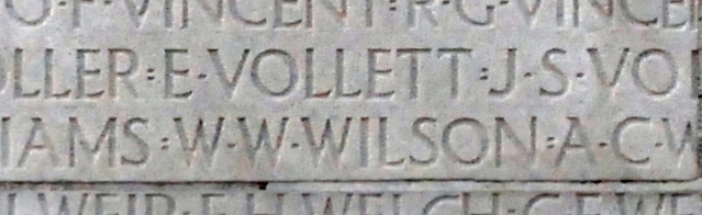 Grave marker for Wilson, William Webster in Vimy Memorial.