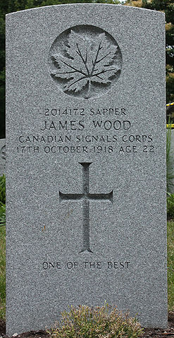 Grave marker for Wood, James in Beechwood Cemetery, Ottawa.