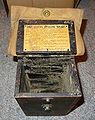 The key fits into a brass slot, with spring base, on the underside of the lid. A short length of flexible lead enables it to be removed from the slot if necessary.