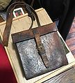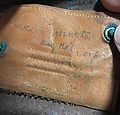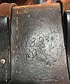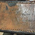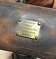 Some examples of the leather case can be found with a metal plate on the outside of the top cover bearing the text:
