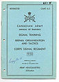 Manuals and other publications serve to instruct and inform on various matters and are very important to Signals, as they are to many services, due to the technical nature of the work and the wide variety of equipment and topics that need to be covered. Early Canadian manuals were largely British in origin, sometimes printed in Canada but often not. After the Second World War Canada started to align more to the United States of America for it's military equipment and hence there were/are many USA publications in use as well.