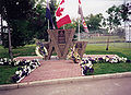 It's original location (53°35′38.782″N 113°32′27.416″W / 53.59410611, -113.54094889) was the site of the original VED radio station 13335 - 127 Street, Edmonton, Alberta. The owners of the property, NavCan, decided to put the property up for sale and it became necessary to do something about the Memorial. After some discussion it was decided that the best place to put it was in front of the 1 CMBG HQ and Signal Squadron, Steele Barracks, Garrison Edmonton, 400 Italy Cres . On October 8th., 2013 there was a small ceremony to rededicate the Memorial and so it now sits on a site leading into the 1 Signal Squadron entrance.