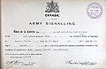 He was posted to the Canadian Signal Training Centre at Camp Borden, Ontario, effective 31 December 1936 but he only remained for a short time as effective 31 August 1937 he was transferred to HQ Militia District No. 4 at Montreal Quebec. He was promoted Sergeant Major Instructor (W.O. I) in 1938. That same year he was attached to Central Camp School of Signals from 16 July until 20 August.