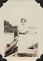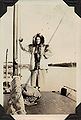 Nona Griswold on the police boat "Calgary", Fort Smith, NWT, c1929