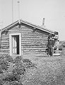 Bert Edge's cabin outside Fort Smith, Fall 1930. Bert Edge, Walter Johnston, (holding Yvonne), Nona and Aubrey Griswold