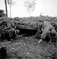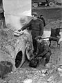 Telephone linkup - Germans laying cable, Wageningen Netherlands, 5 May 1945