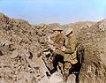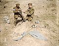 83rd Battalion Signallers sending semaphore letters in Riverdale Park colourized