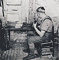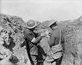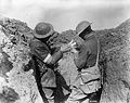 Watering pigeon carriers in the trenches on Hill 70 August 1917