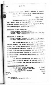 The Committee of the Privy Council have had before them a Report, dated 7th February, 1935, from the Minister of National Defence, representing that the Department of National Defence requires the following vehicles: -