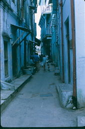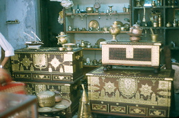 In Zanzibar the streets became very narrow towards the city center. Among other things, the shops on these narrow streets carried the famous and beautiful mahogany and brass Zanzibar chests that can be seen in the photographs below.