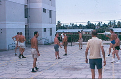 Our Volleyball Court: When I arrived in Tanzania, we were still in the early stages of our mission so our amenities had not been completely established. As we all know, one of our favoured athletic pastimes in the military is volleyball but, we did not have a volley ball court. Being the can-do-make-do soldiers that Canadians are, we grabbed a couple of shovels and started digging into the side of the hill beside the entrance to our dining room. Our Engineer Sergeant got some more shovels and soon all Senior Non Commissioned Officers were digging until we finally had a flat surface. Larry Hooper finessed the job by wiring up some lights so we could play at night. This facility provided many enjoyable hours of entertainment during our tour. Together with everything else volleyball kept us fit.