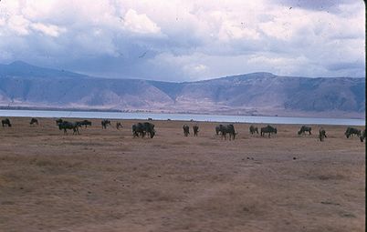 Ngorongoro Crater is an amazing Tanzanian game park and popular safari site. It is contiguous with the Serengeti to the Northwest. The crater was formed by the implosion of a huge volcano that collapsed into its self about two to three million years ago. The crater floor is about 20 kilometers in diameter (12.5 miles) and is rich with wildlife. Prior to the eruption it is estimated that the Ngorongoro volcano would have rivaled Mount Kilimanjaro in altitude. The rim of the crater can be seen in the pictures below as can the abundance of wildlife. Visitors to the crater were not allowed down into the crater without a park ranger for obvious reasons.