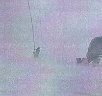 We would build a sort of igloo around the generators so that the exhaust from one would keep the other one warm and ready to take over. The rolls of telephone cable were wound in a doughnut shape so that when the rolls were joined, the line could be laid from a helicopter, or a sled, without snagging. The line would be paid out from the center of the doughnuts.