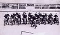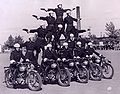 In the fall of 1952 the Royal Canadian Corps of Signals Despatch Rider Display Team was formed. Patterned after the Royal Signals team which had performed since 1930, the 26 members used unmodified standard issue motorcycles to provide an action packed half hour show. They performed from the spring of 1953 until 1956 when the team was disbanded.[1]