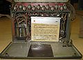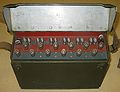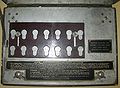 The unit is housed in an aluminum case that has a hinged panel on the front that protects the switchboard controls and acts as a tray that organizes the plugs and pulleys. Another panel on the rear allows access to the wire post connections as well as the internal parts and battery box. The switchboard itself is made up of modular, replaceable sections that have a B jack on the bottom, an A jack at the top, a numbered lamp to indicate an incoming call (and for testing the unit) as well as a white plastic panel where the operator can write down who is at the other end of that particular wire.[1]