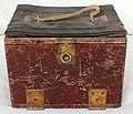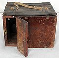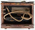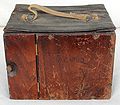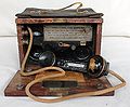 The phone is in a wooden box with a protective top cover and a handle. The box is marked GPO with C18 over 234 alongside. The phone was powered by two dry cells "W" that were placed in a compartment accessible from the rear. The inner workings where inaccessible behind a screwed in panel. The front opened to expose the handset and calling crank. The front had four pads that supported the phone when it was flipped under the phone. The telephone featured a Model No. 112 handset with the markings C17 over 234 along side No. 112.