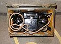 The telephone is 12” long by 7” wide by 8” deep weighing 17 lbs. 4 oz. and is housed in a hinged wooden box for carrying and storage. The set can be removed from its case by depressing a metal spring tab, or alternatively, the spring tab has a second stop leaving the set somewhat inside the case where it can be operated protected from inclement weather. The set has a cast alloy body with provision for the handset socket and cradle, a buzzer, ringers, line connections and a magneto generator operated by a crank. Power is supplied by two 1.5 volt "X" or "S" cells in a wax lined battery compartment on the left side of the set. The magneto and gears are in the centre and the buzzer slides in vertically on the right. Access to the batteries, magneto and buzzer is by way of removable caps on the top of the set. The handset is a Telephones, Hand, No. 1 which is a molded form containing a Receiver inset, No. 1L and a Microphone capsule, Mk IV. There is no provision for a Morse key as there was in other telephone sets designed for use in more forward areas.[2]