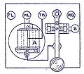 When the switch of the hand telephone connected to the "Transmitter, vibrating," is pressed, a circuit is completed round the coil, through the microphone and two cells. Speaking into the microphone then produces variations in the current in the usual way, these variations are communicated to the current in the line, and speech is reproduced in a receiver introduced elsewhere in the line, though not quite so efficiently as with an ordinary telephone. It is immaterial which of the terminals marked "L" is connected to line and which to earth.